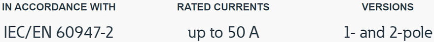 The switching capacity is 10 kA according to IEC/EN 60947-2 The DC rated voltage is 220 V per pole for the 2 A version, and 250 V per pole for the 3 A to 50 A versions. A guide for secure terminal connection and a 3-position DIN-rail simplify the installation of the circuit breaker.