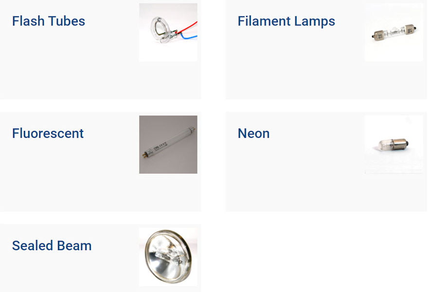Incandescent, halogen, fluorescent, neon and PMA-approved LED lamps for aircraft of all types.