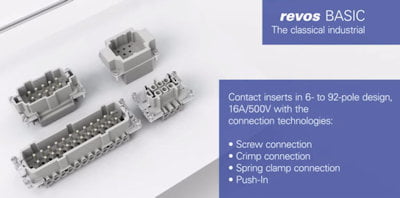 The revos BASIC connectors meet the toughest requirements and are used in all types of applications for machine building or anywhere power and control signals need to be connected.